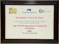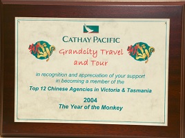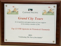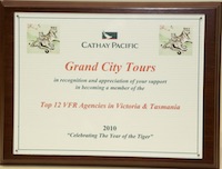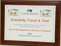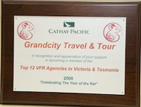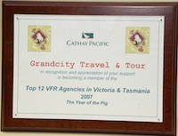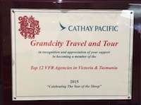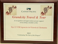 宏城旅游连年荣获國泰航空公司颁发的TOP 12 VFR 旅行社奖